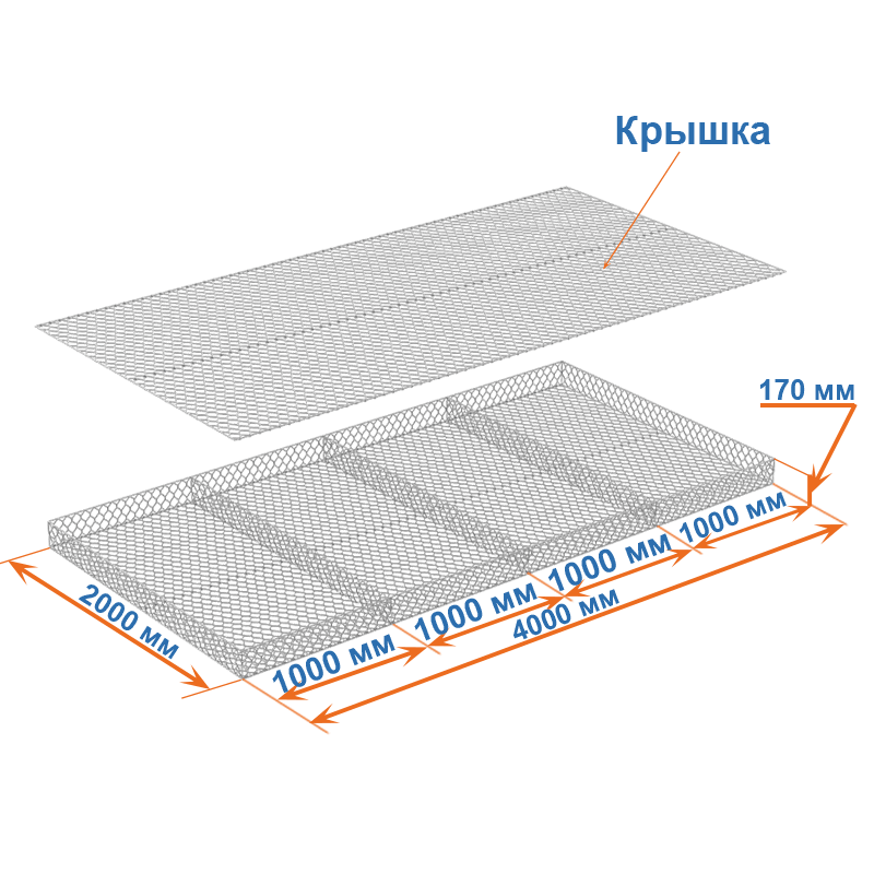 Габионные матрасы Рено 4x2x0,17: ячейка 60х80, диаметр проволоки 2,2 мм, покрытие Цинк.
