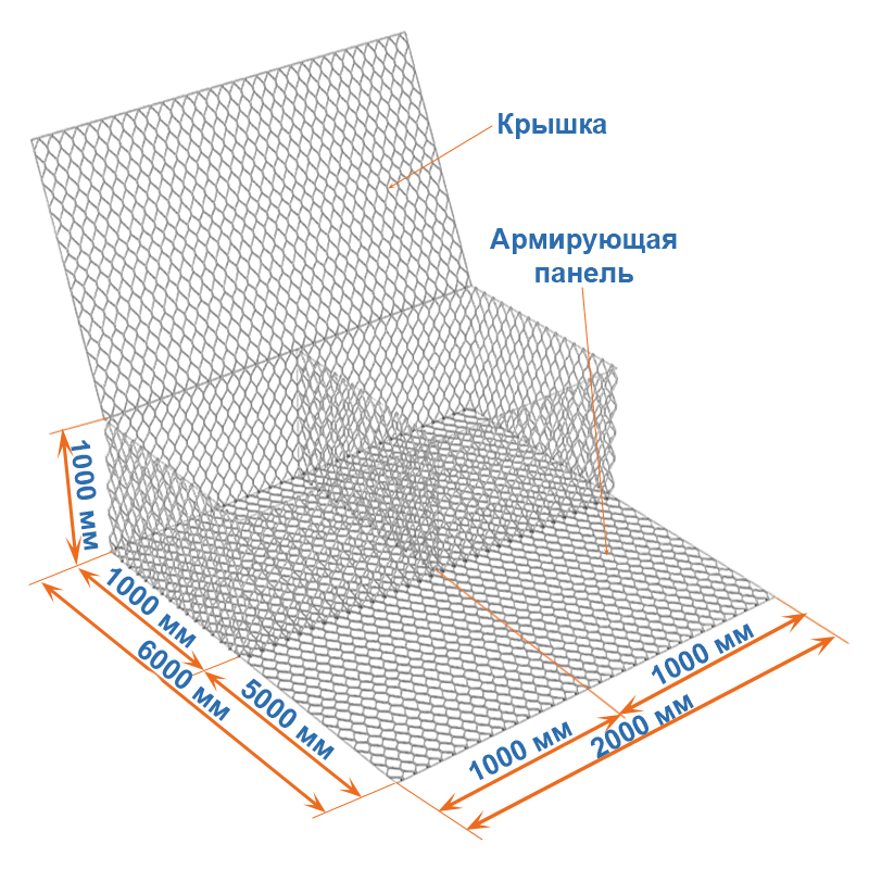 Габион с армопанелью 6x2x1 – это конструкция, состоящая из сетки двойного кручения. Она состоит из основной части (коробчатого габиона) и армирующей панели. Армирующая панель – это продолжение основания габиона и является неотъемлемой его частью.